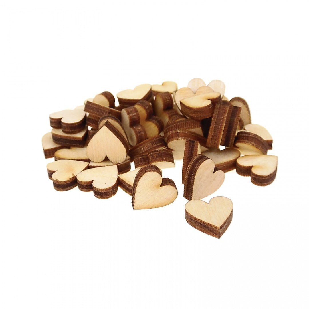 Małe, drewniane serduszka wycięte precyzyjnym laserem ze sklejki o grubości 3mm można wykorzystać do dekoracji ozdób świątecznych i makramy ściennej.