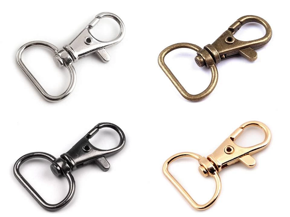 Metalowe zapięcie do toreb i breloków dostępne jest w kilku rozmiarach i wersjach kolorystycznych.