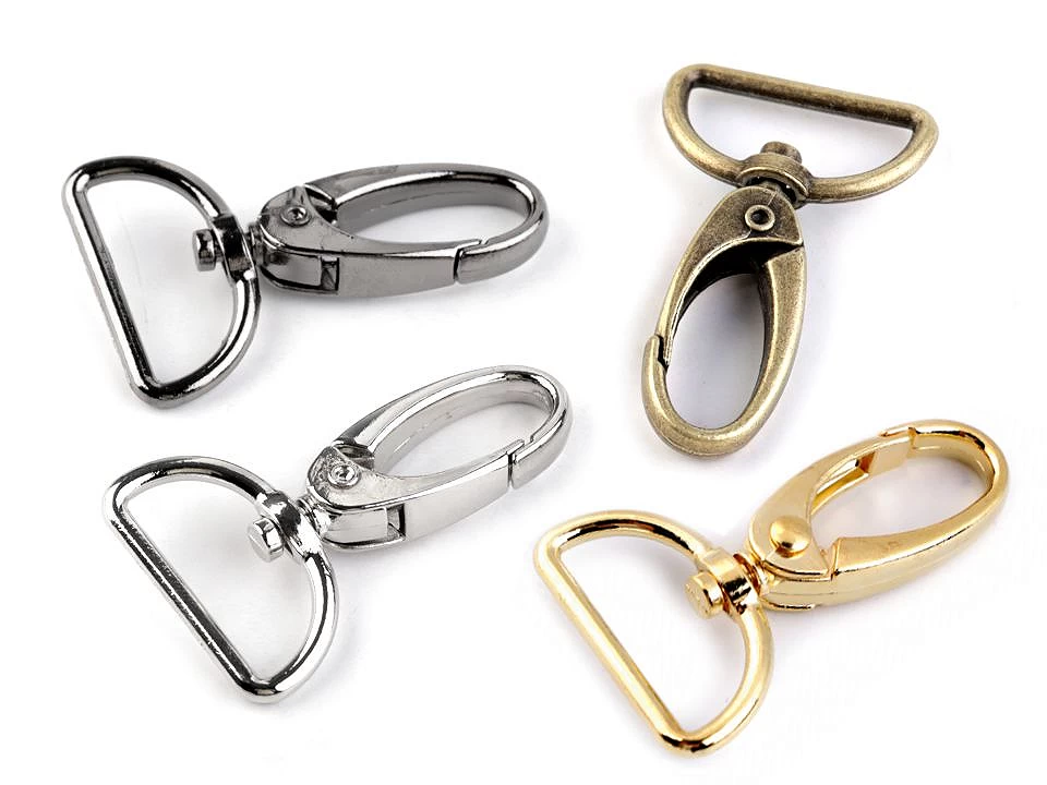 Metalowe zapięcie do toreb i breloków dostępne jest w kilku rozmiarach i wersjach kolorystycznych.