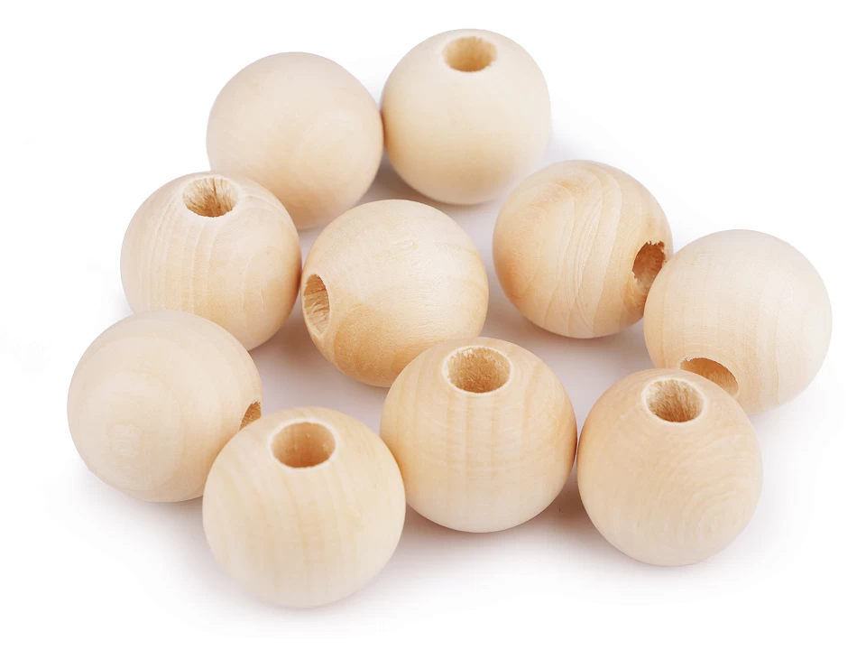 Nielakierowane drewno i delikatny kształt dodadzą uroku każdej pracy ze sznurka. Polecamy użyć igły do przewlekania jeśli chcesz połączyć korale ze sznurkiem skręcanym lub przewlec grubszy sznurek niż średnica otworu.