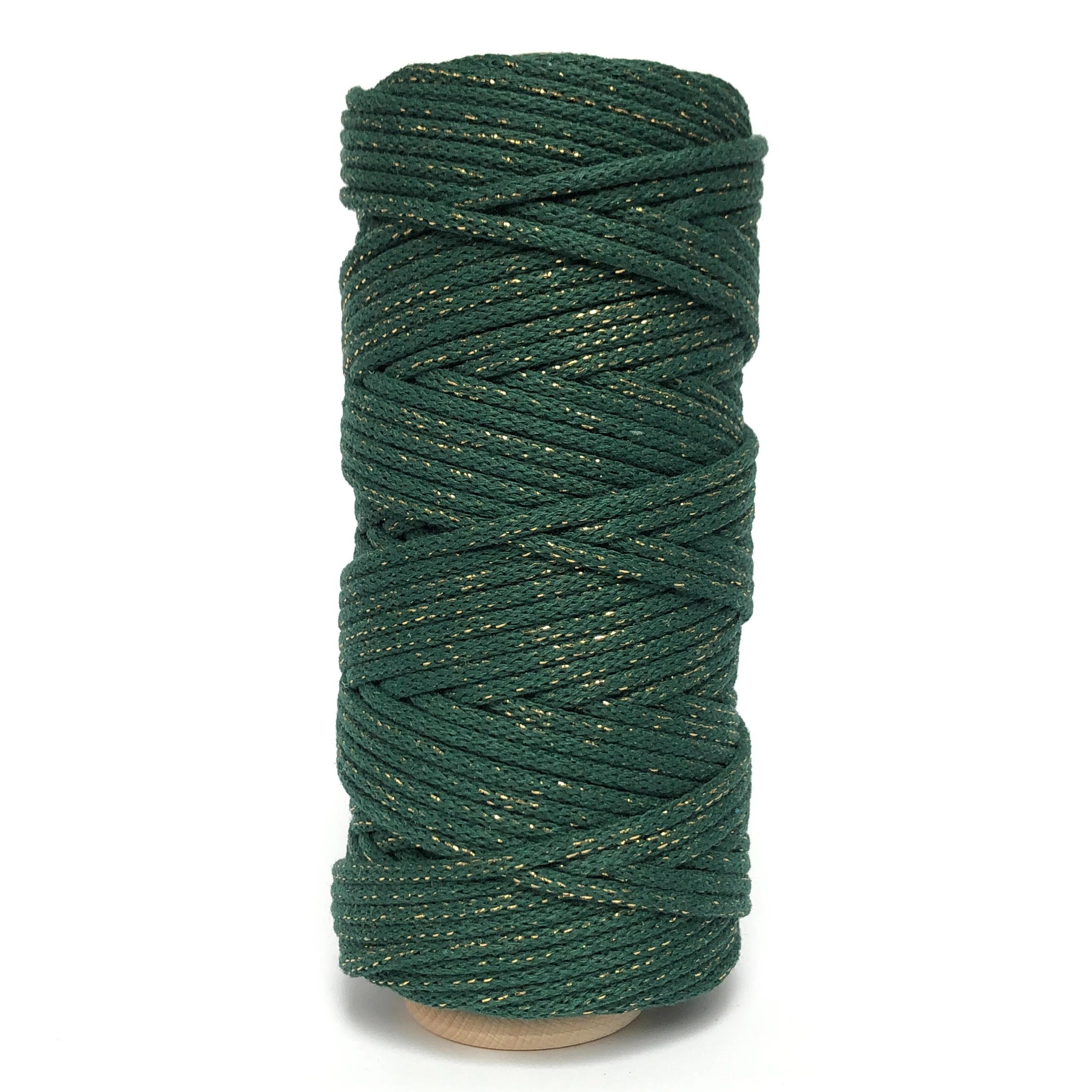 Sznurek pleciony do makramy o grubości 5 mm w kolorze BUTELKOWYM ZŁOTYM. Sznurki plecione marki Classic i Perfect nawinięte są krzyżowo na kartonową rolkę, co ułatwia wyplatanie makramy dla początkujących, zapobiega plątaniu się sznurka.